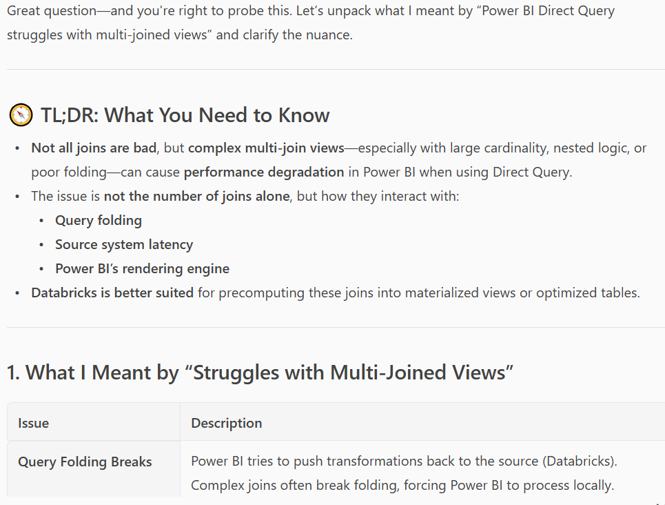 “Explain more what you mean by this “Power BI Direct Query struggles with multi-joined views;” Do you mean any ingest query with more than one join will be slow?”