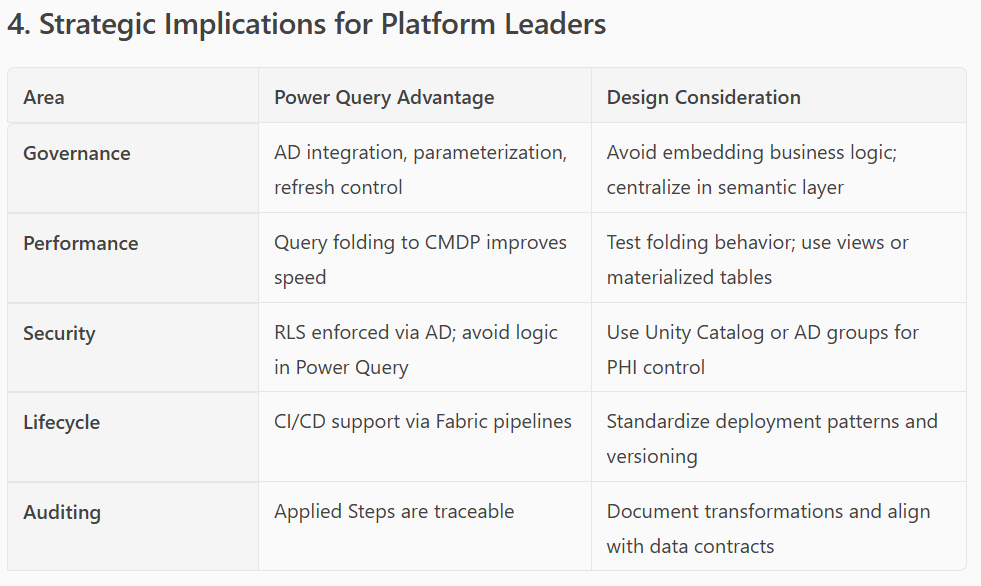 “What are some decisions we need to make about how much transformation we want to ship “upstream” into the warehouse vs what should be done in Power BI? How might those best practices shift based on whether the user is part of the central data team vs users embedded in other business units?”