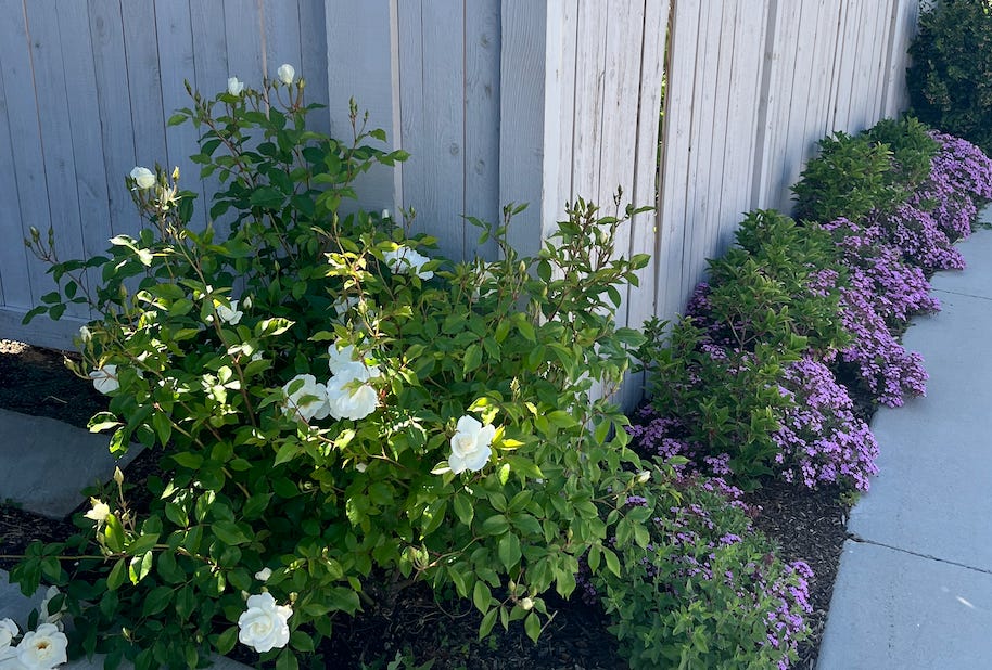 As much as I love gardening, I don’t love some aspects of maintenance. Weeding, watering, and taking care of grass - hard pass. So I’ve ripped out all the grass in my front yard and put plants on drip irrigation and we are aiming to fill in with ground cover to crowd out weeds. So that minimizes the parts I hate.